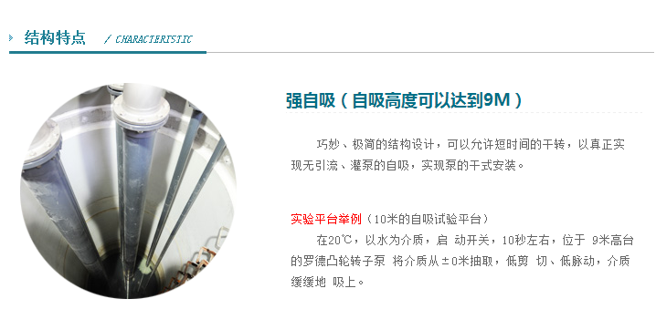 羅德凸輪轉(zhuǎn)子泵結構緊湊、體積較小,可實行快速在線維修,無需拆卸管路系統(tǒng);羅德凸輪轉(zhuǎn)子泵泵體結構對稱,只需要改變動力轉(zhuǎn)動方向,即可改變介質(zhì)流道流向;尤其是對軟雜質(zhì)通過能力較強,并且有超強的自吸能力。