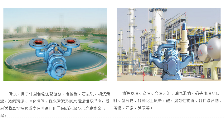 羅德轉(zhuǎn)子泵在石油石化領(lǐng)域應(yīng)用廣泛,穩(wěn)定源于雙支撐軸,加上耐腐蝕耐磨損的橡膠轉(zhuǎn)子泵,在油泥浮渣處理,含有污水處理,污油水分離等工位上都有成功應(yīng)用。